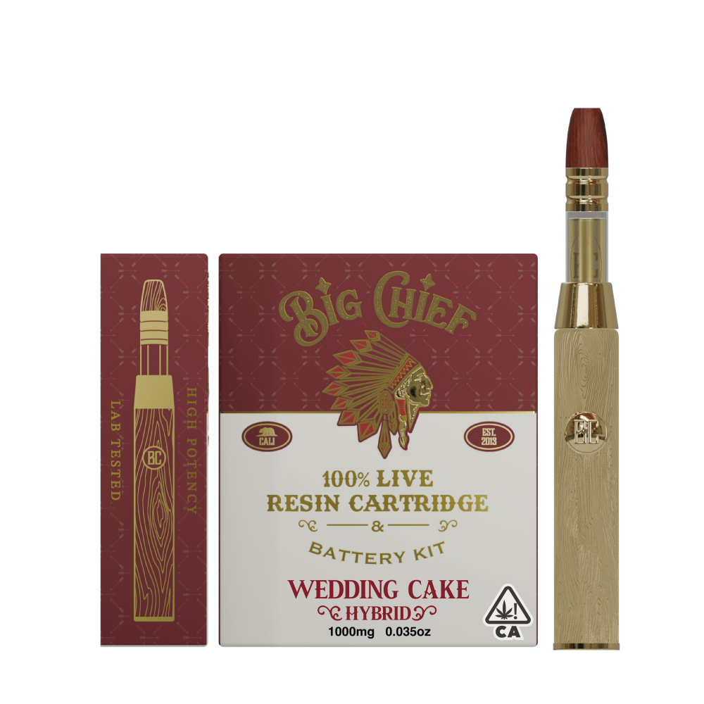 The Big Chief Wedding Cake 1G Live Resin Cart – 100% Live Resin Oil, Hybrid combines smooth flavor, reliable effects, and premium performance in one package.