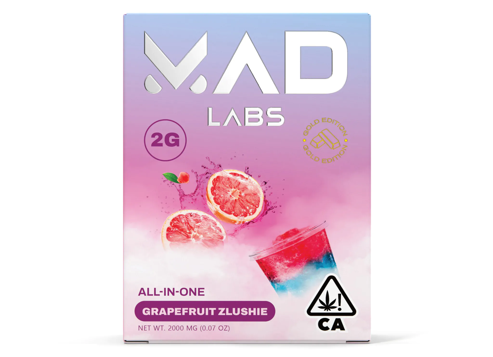 Experience the smooth, potent, and consistent effects of the MAD LABS ALL IN ONE GRAPEFRUIT ZLUSHIE 2G GOLD EDITION DISPOSABLE, now available on the Weedmaps dispensary website — designed for cannabis users who want clean, energizing, and reliable Sativa vaping.