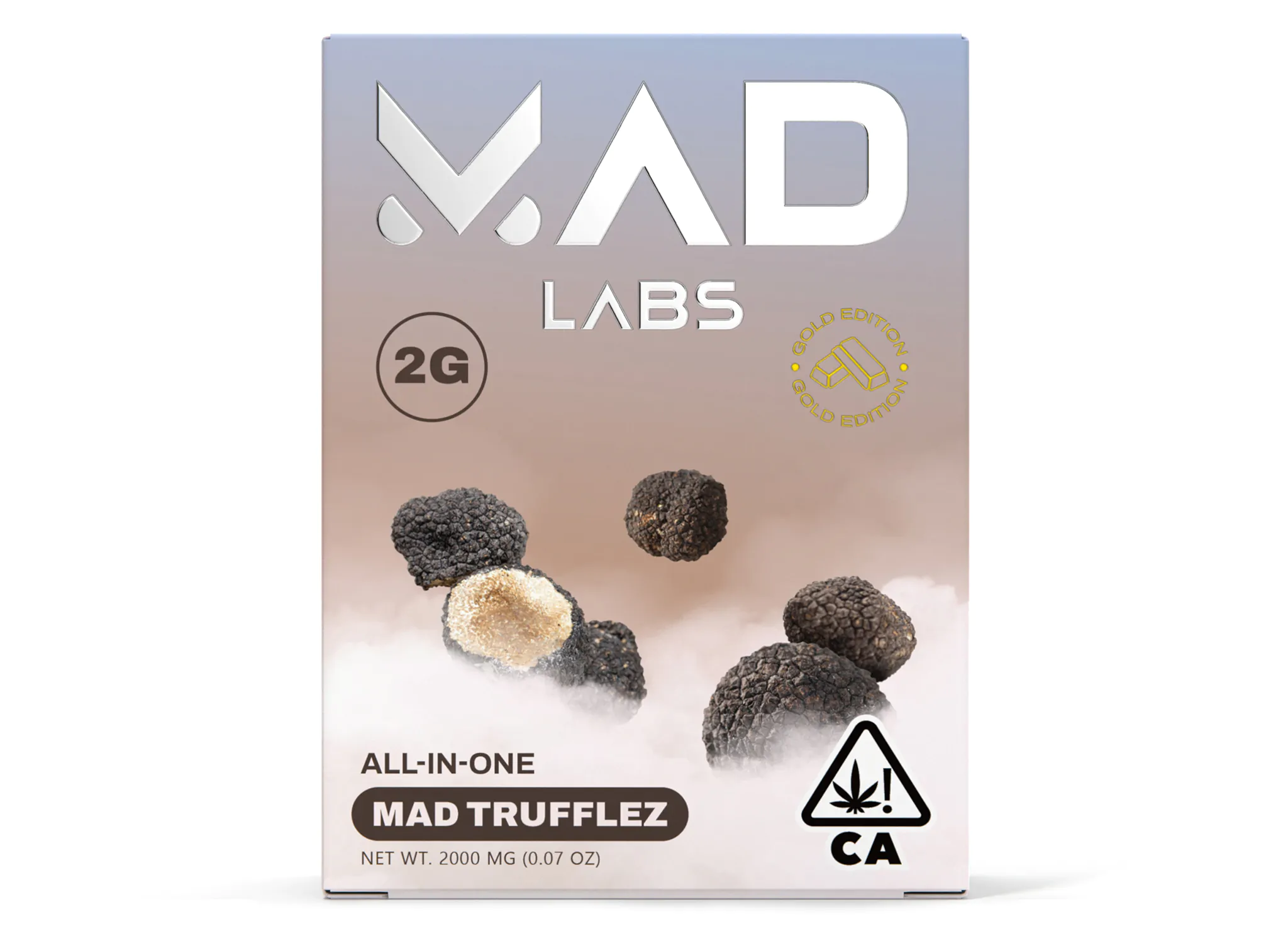 Experience reliable, potent Indica effects with the MAD LABS ALL IN ONE MAD TRUFFLEZ 2G GOLD EDITION DISPOSABLE, now available on the Weedmaps dispensary website, crafted for consistent, high-quality Indica vaping.