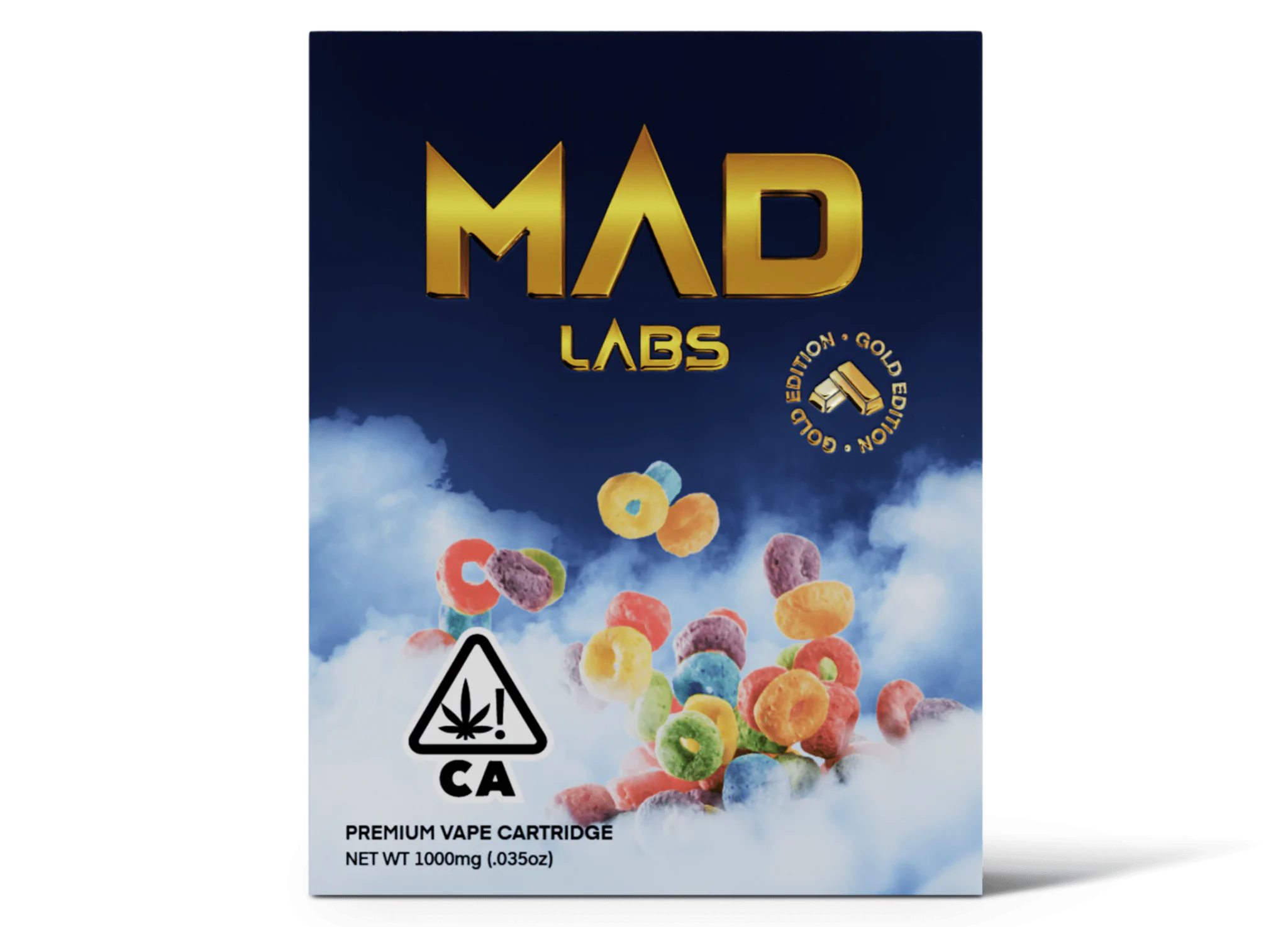 Elevate your cannabis experience with the Mad Labs Fruity Cereal 1G Gold Edition Cartridge, available on the Weedmaps dispensary website. Its smooth hits, dessert-inspired flavor, and balanced hybrid effects make it a must-have for anyone seeking a high-quality hybrid vape cartridge. Enjoy consistent performance, authentic flavor, and versatile effects with every puff.