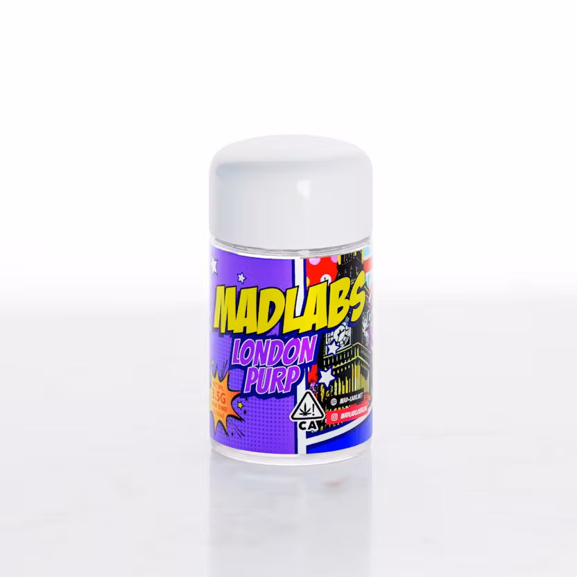 MAD LABS has earned a reputation for producing premium small-batch cannabis with reliable quality, flavor, and potency. London Purp is cultivated in controlled indoor environments and carefully cured to preserve full terpene profiles, trichome coverage, and smooth smoke. Available on the Weedmaps dispensary website, this 3.5-gram jar guarantees a top-shelf indica-dominant hybrid experience every time.